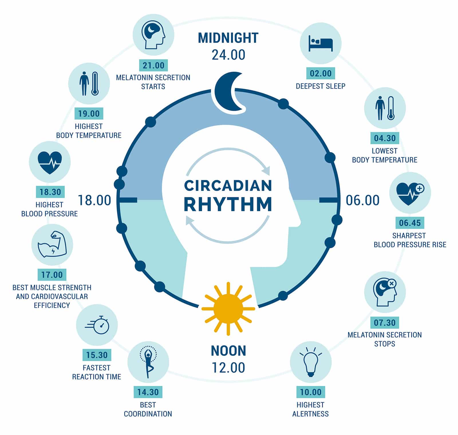 Circadian rhythms are the body’s internal clocks that regulate various physiological processes over a 24-hour cycle. Derived from the Latin words “circa” (around) and “diem” (day), these rhythms are deeply ingrained in our biology, ensuring our bodies are in sync with the natural cycles of light and darkness. While the most well-known circadian rhythm is the sleep-wake cycle, these rhythms extend to nearly every aspect of our physiology, including body temperature, hormone secretion, digestion and cognitive function.