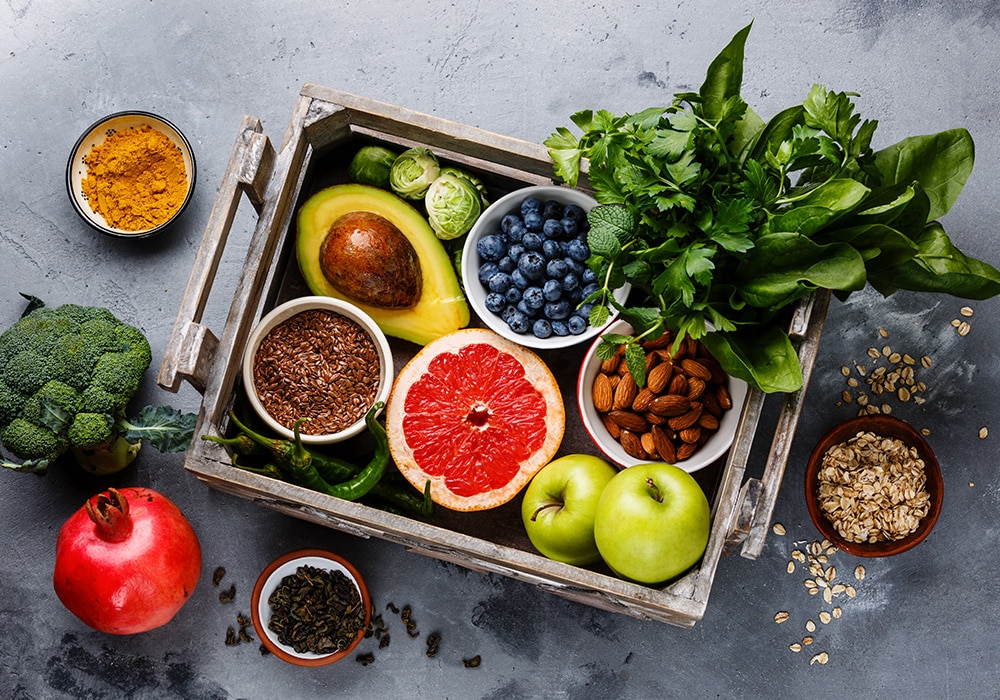 Fruits and vegetables are rich in vitamins, minerals and antioxidants that enhance immune function and support overall health. Opt for organic where possible (be mindful of the dirty dozen and clean fifteen) and aim for a rainbow of colours to ensure a diverse nutrient intake. Berries, pomegranates, apples, spinach, broccoli, Brussels sprouts, red bell peppers and sweet potatoes are known for their high antioxidant content and nutrient density.