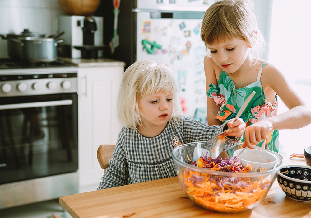 Let them choose fruits, vegetables and snacks they enjoy as it fosters a sense of ownership over their meals. Cook together and engage your kids in the kitchen. Let them choose a recipe or participate in meal prep to get them excited about eating nutritious foods. Set up a “build-your-own” station for meals like tacos, wraps or salads. Kids love the autonomy of choosing their ingredients and it’s a fun way to prep meals.