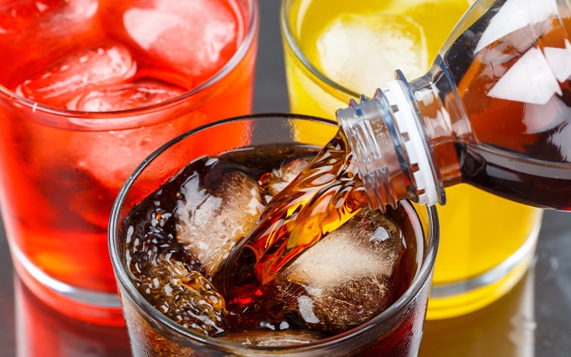 Foods that are processed with fluoridated water also contribute to fluoride intake. Sources include bottled beverages such as certain brands of water, fruit juice and soft drinks, black tea (has high levels due to the soil in which it grows), green tea (lower levels than black tea), canned food (soups, processed meats) and seafood (shrimp, crab).