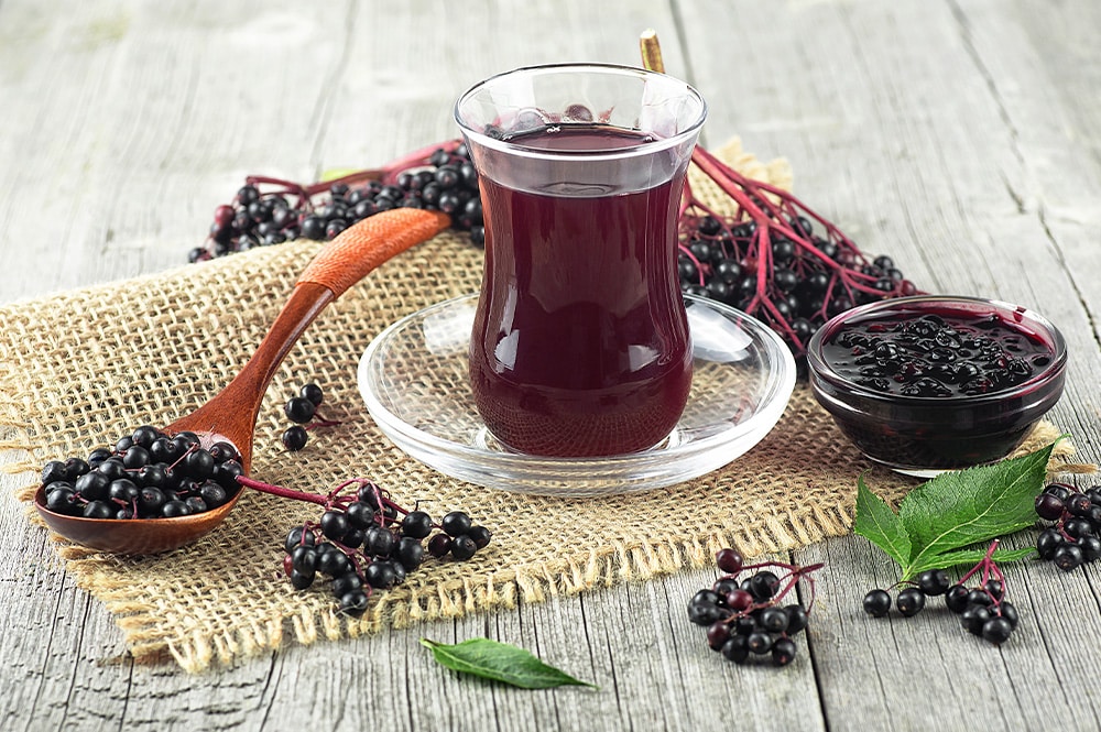 One of the best ways to take elder is to make a tea from the dried berries. Steep 2 – 4 tablespoons of dried elderberries in 1 cup of hot water for at least 15 minutes. Strain the tea and drink it up to three times a day.