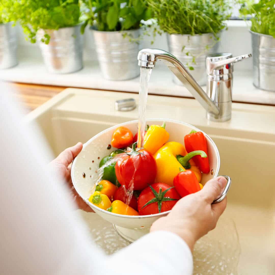 If you’re strapped for time and you can’t soak your produce, we recommend giving your fruits and vegetables a wash under the tap for twenty seconds. This will help remove some of the pesticide residue and also clear away bacteria and dirt (especially all the dirty fingers which it’s come into contact with).